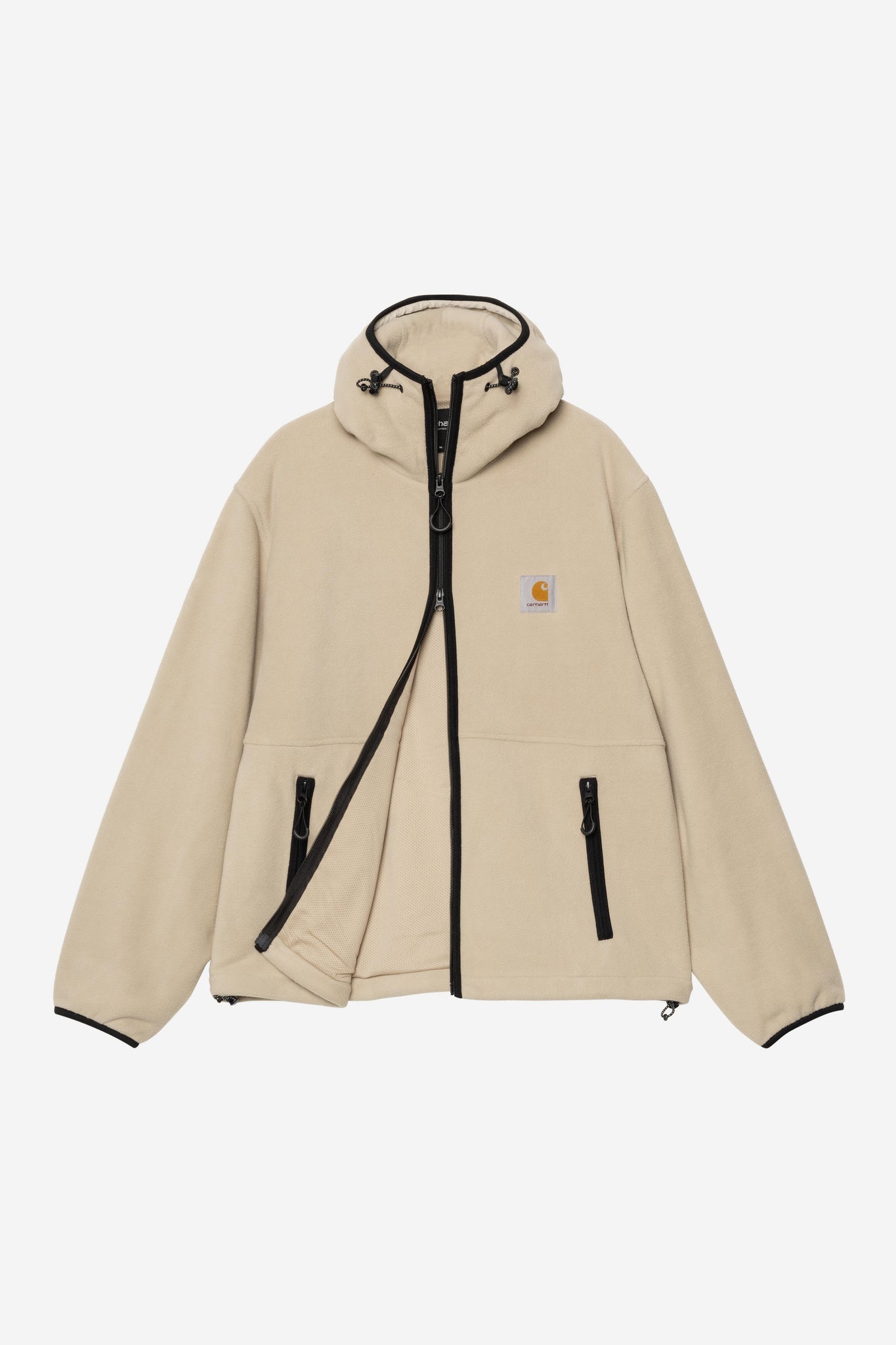 Der Carhartt WIP Blevin Liner besteht aus einem mittelschweren Polyester-Fleece mit Mesh-Futter. Kapuze und Saum sind verstellbar, während ein reflektierendes Square Label das Design markentypisch abrundet.
