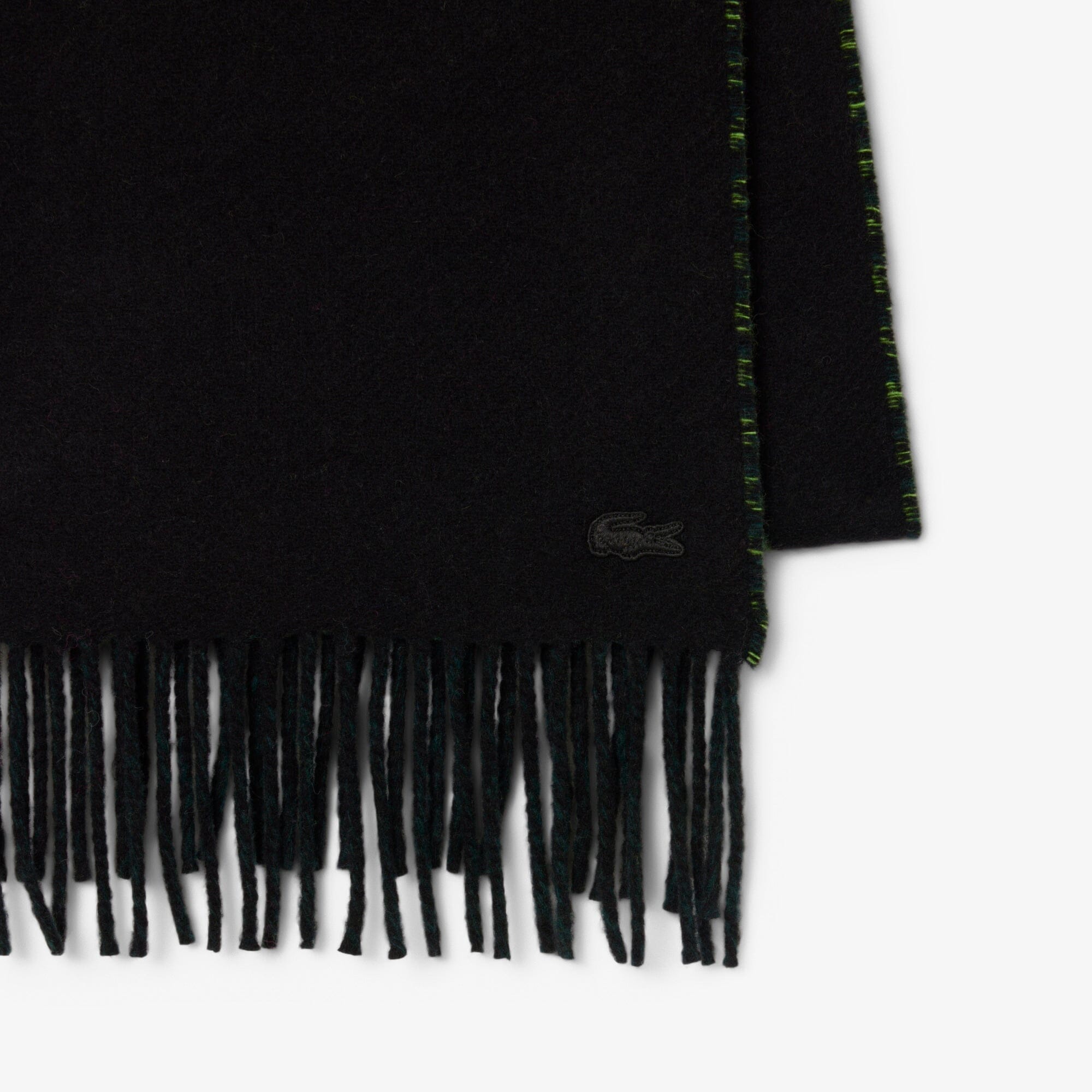 Details: Jacquard-Branding, Fransen an den Enden, gesticktes Krokodil