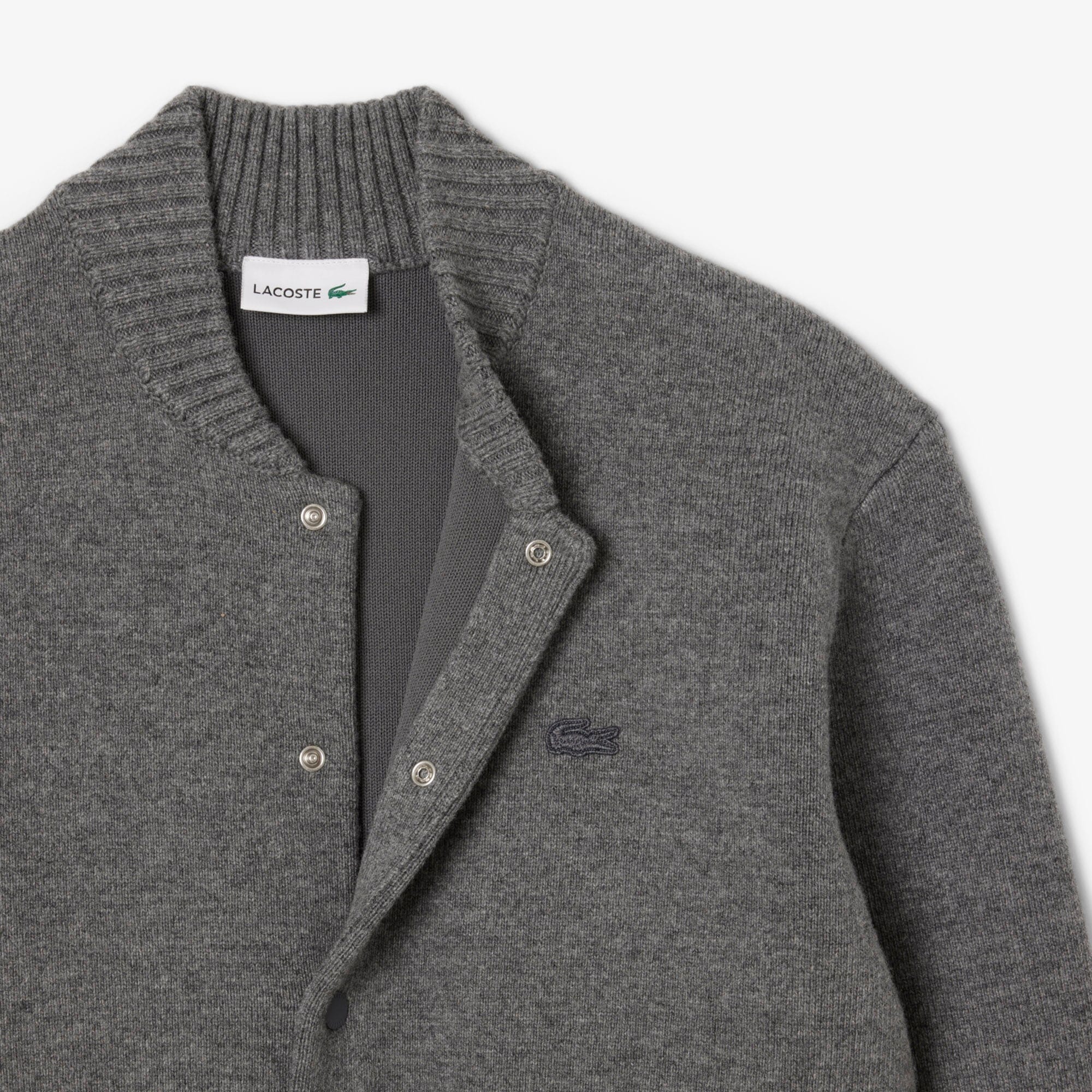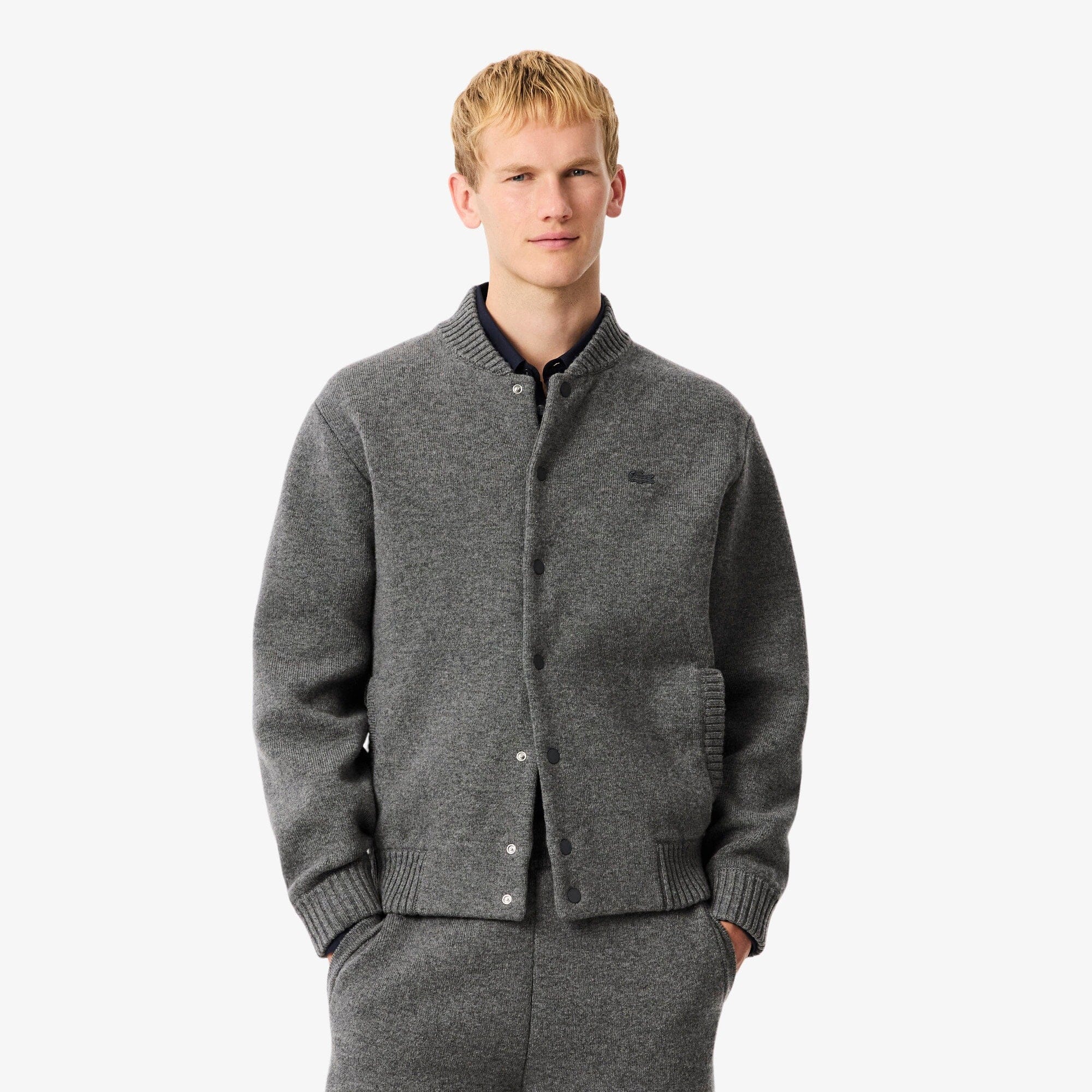 Die Bomberjacke von Lacoste ist eine moderne Neuinterpretation des Klassikers, gefertigt aus dickem Merinostrick für eine weiche, strukturierte Haptik. Der doppelseitige Jersey aus tierfreundlicher Merinowolle und recyceltem Polyester verleiht dem Modell eine hochwertige und zugleich technische Note. Abgerundet wird das Design durch Logo-Druckknöpfe, Rippstrick-Details und das gestickte Krokodil-Logo auf der Brust.