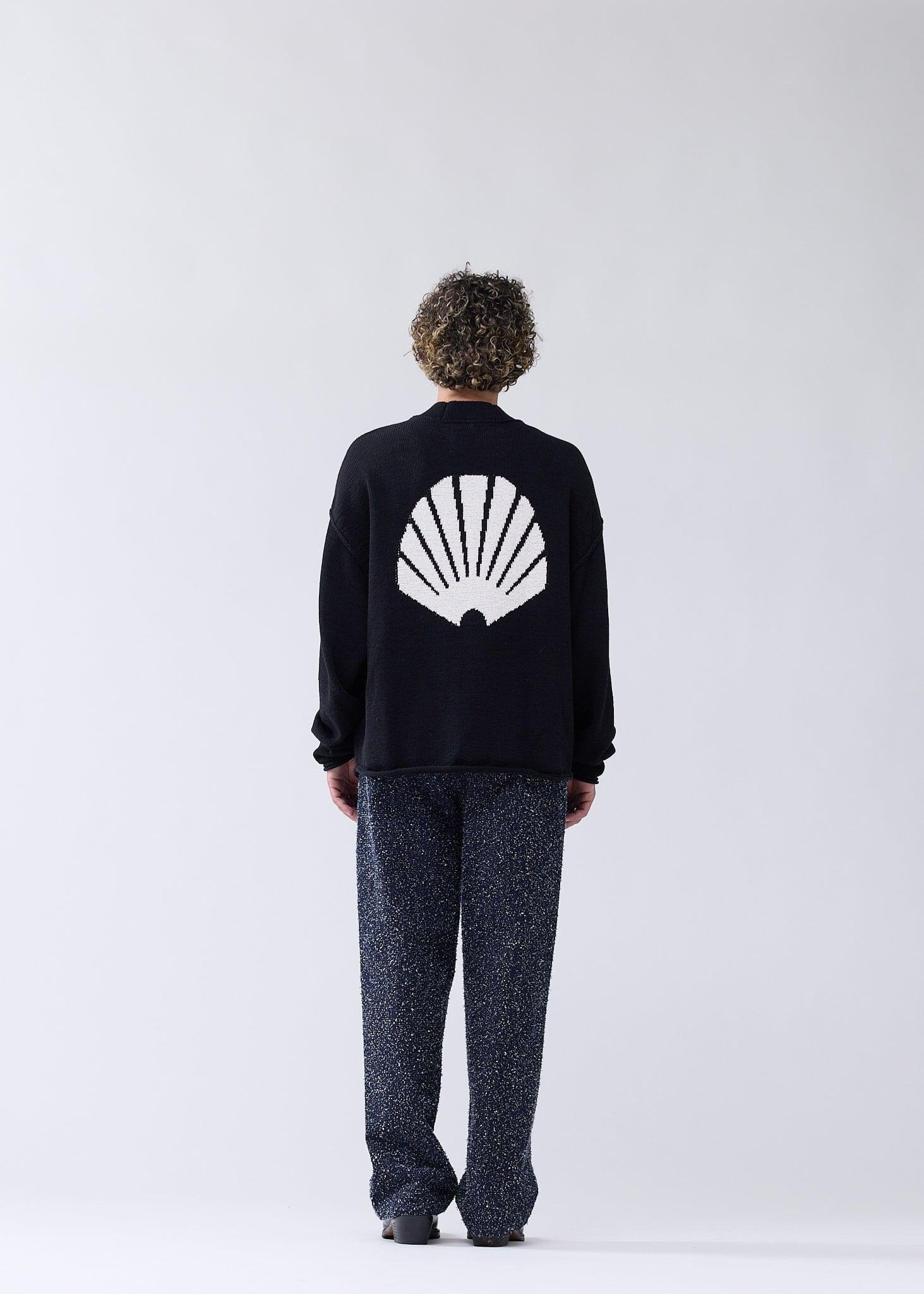 Der Oversized Boxy-Fit Cardigan ist hüftlang geschnitten und aus einem Baumwollmischgarn in Tape-Strickoptik gefertigt, was ihm eine strukturierte und atmungsaktive Haptik verleiht. Das Design verfügt über Fronttaschen, eine weiße Shell-Logo-Intarsie auf der Rückseite sowie nach außen gelegte Nähte an den Armausschnitten für einen dekonsturierten Look. Gerollte Abschlüsse an Ärmeln und Saum runden das Design ab.