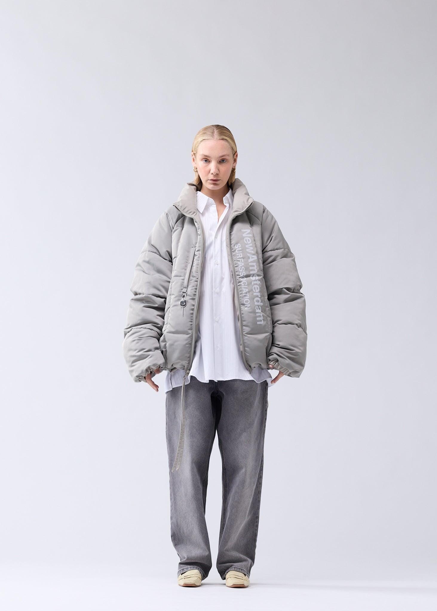 Zu den Details gehören Signature-Stickereien, ein Logo-Print auf der Innenseite, ein Spiralreißverschluss sowie Reißverschlusstaschen. Die Kombination aus Funktion, Stil und nachhaltigen Materialien macht diese Jacke zu einem vielseitigen Statement-Piece.