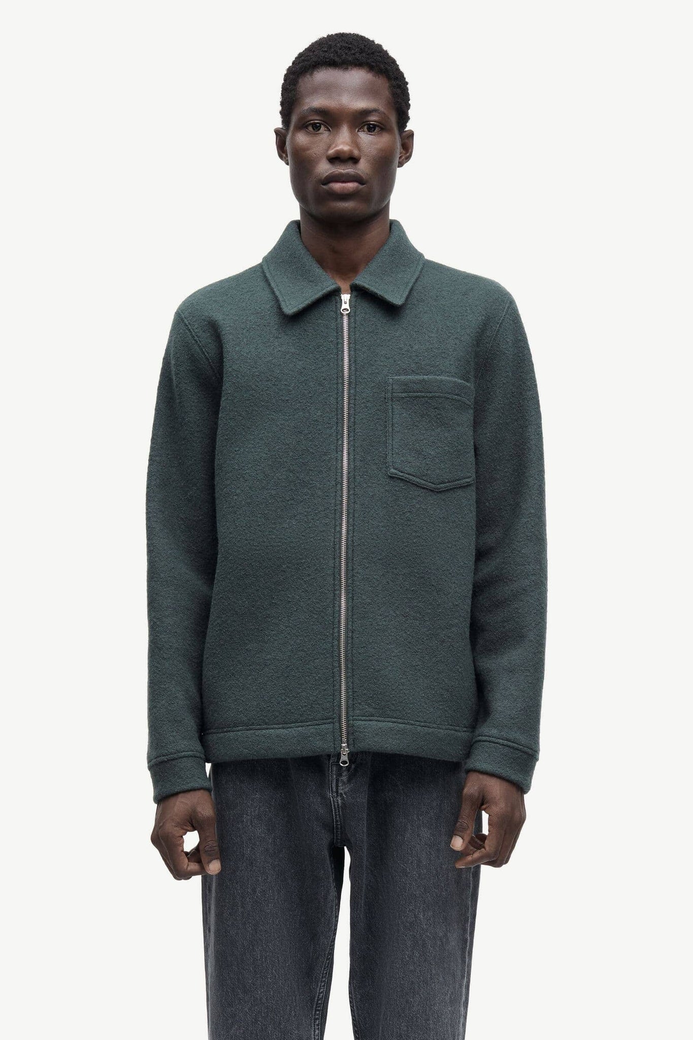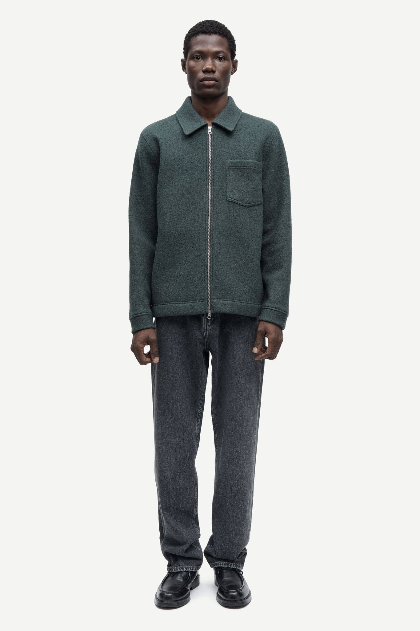Cardigan mit klassischer Passform aus gefilztem Sweatstoff aus 100 % Wolle. Ausgestattet mit spitzem Kragen, Zwei-Wege-Reißverschluss und einer praktischen Brusttasche für einen cleanen, funktionalen Look.