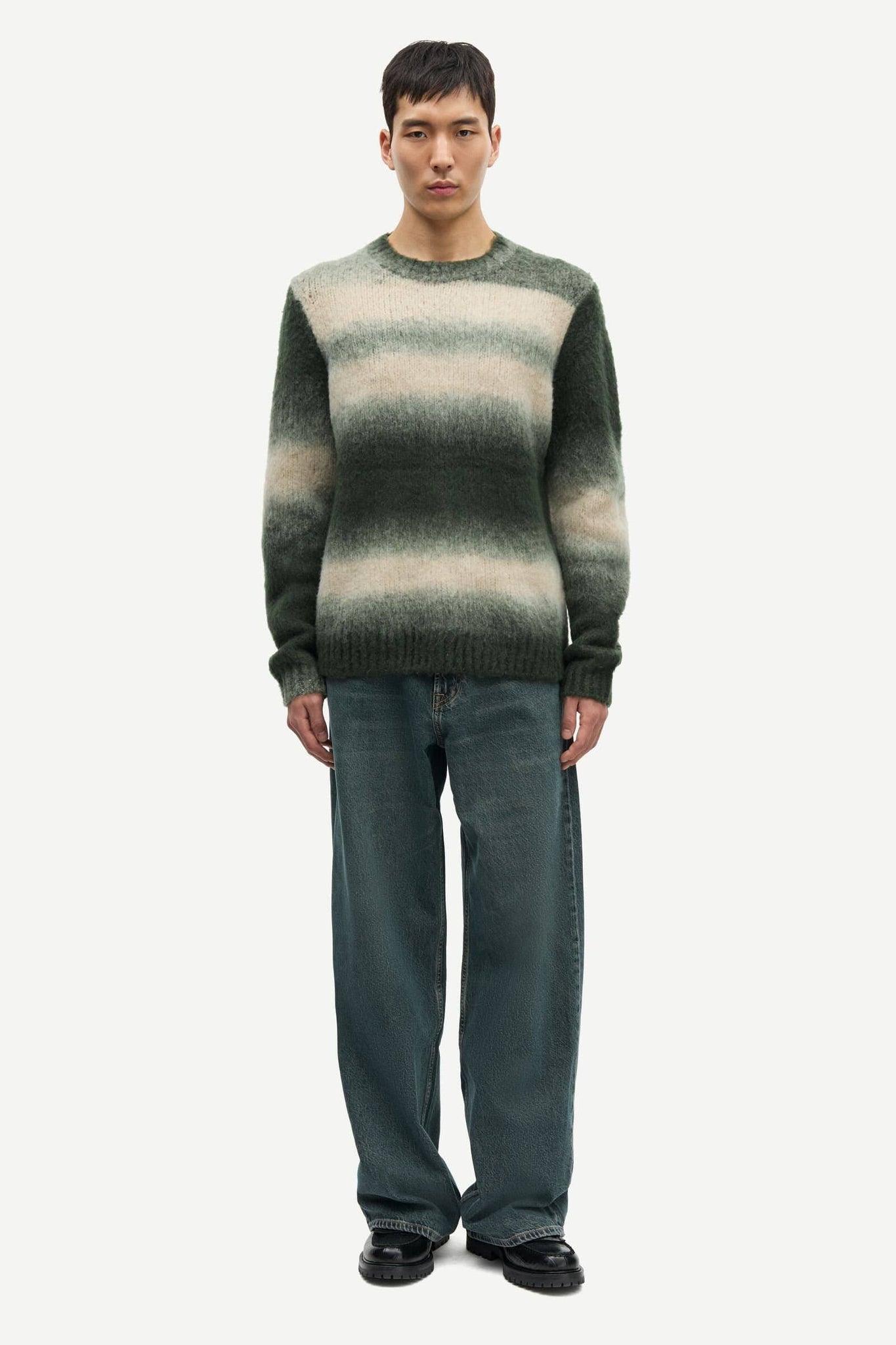 Ein gestreifter Strickpullover mit weicher, leicht gebürsteter Oberfläche und klassischer Regular-Passform. Der Zwei-Wege-Reißverschluss bringt einen modernen Twist ins Design, während Rippen an Kragen, Bündchen und Saum für Struktur sorgen. Der runde Halsausschnitt hält den Look unkompliziert und alltagstauglich.