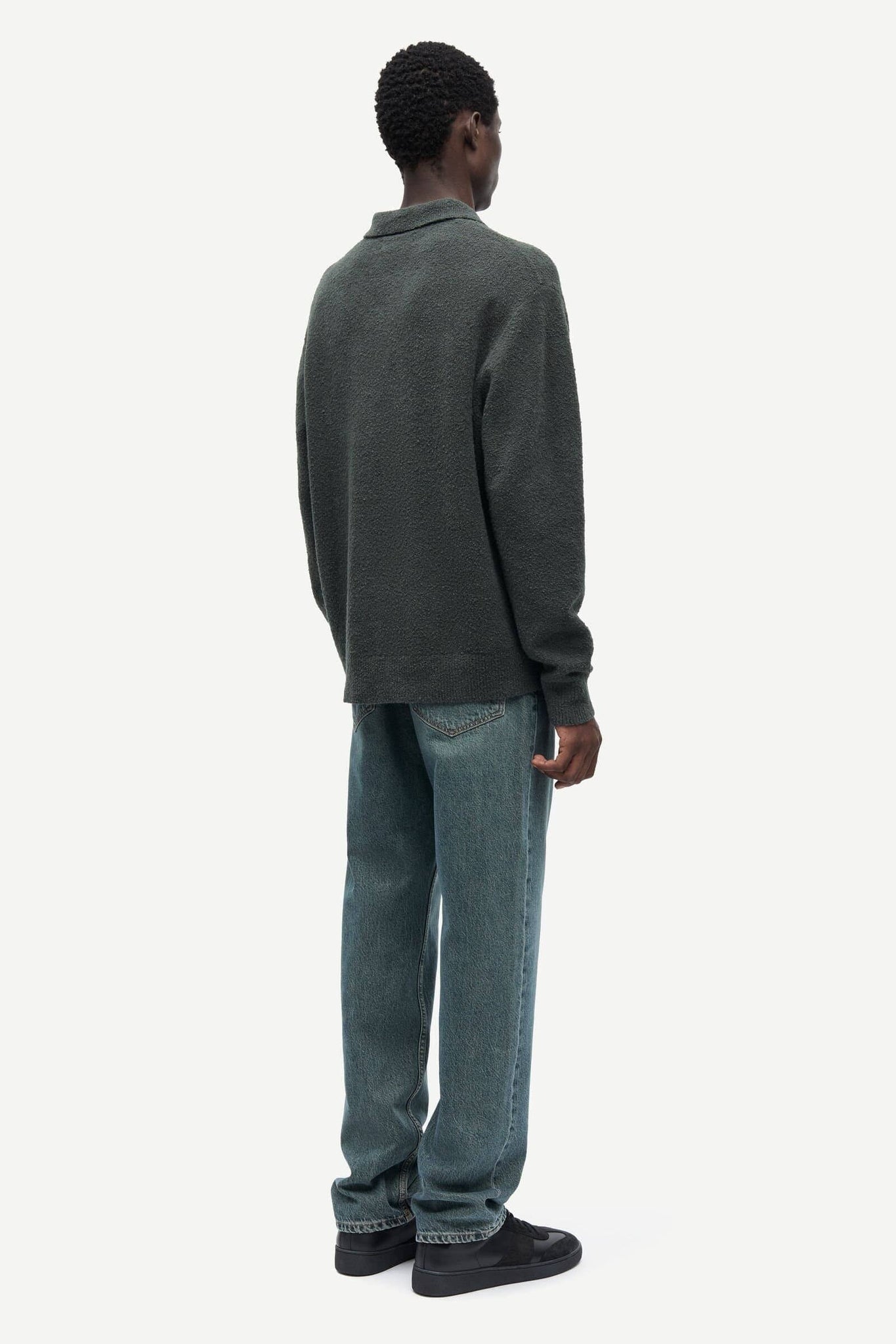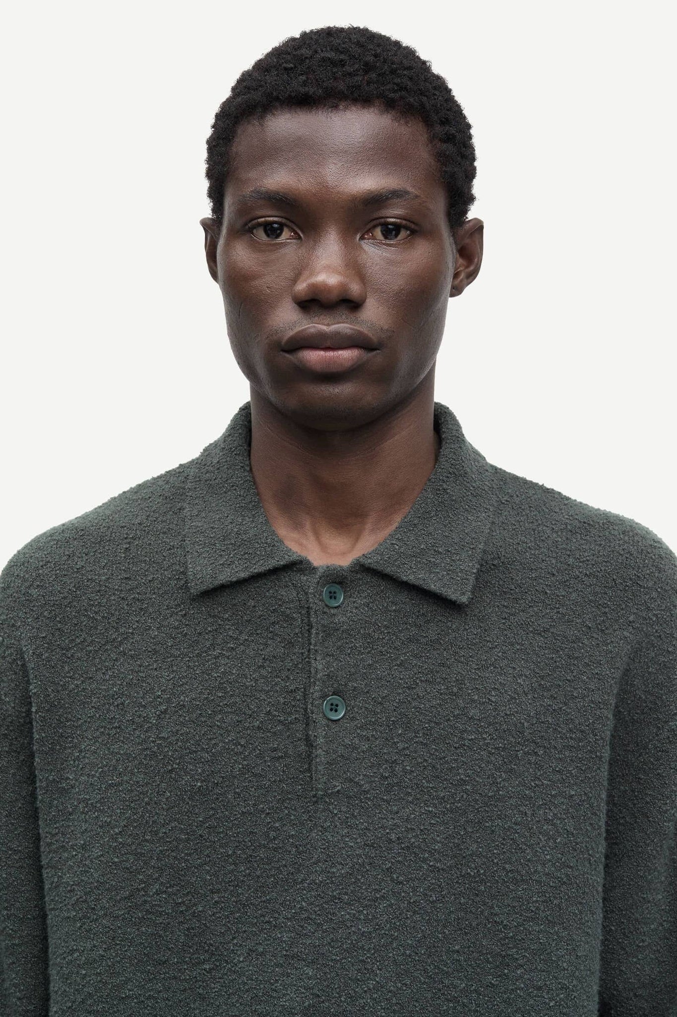 Ein lässiger Polo-Sweater mit lockerer Silhouette, gefertigt aus einem elastischen Baumwoll-Mix mit Bio- und recycelten Fasern. Der kurze Knopfverschluss setzt einen dezenten Akzent, während ein sauber gearbeiteter Milano-Strickkragen dem Design Struktur gibt. Rippbündchen an Ärmeln und Saum sorgen für Halt und ein ruhiges Finish.