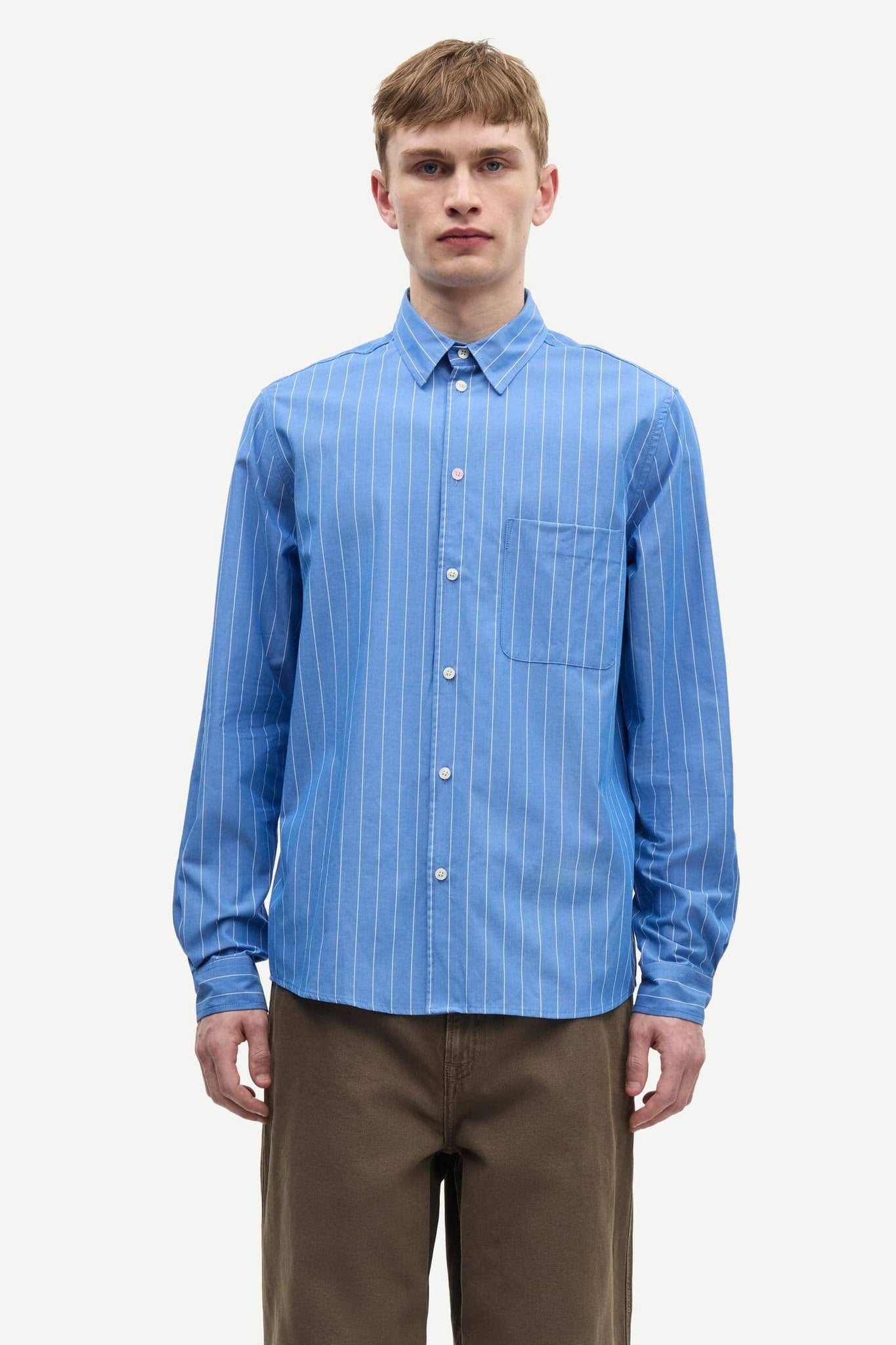 Langärmliges Hemd in regulärer Passform aus portugiesischer Bio-Baumwolle. Der Stoff ist sauber gewebt, angenehm auf der Haut und alltagstauglich. Klassische Details wie die durchgehende Knopfleiste, die geknöpften Manschetten und die aufgesetzte Brusttasche sorgen für eine klare, zeitlose Optik. Die rückwärtige Schulterpasse gibt dem Hemd Struktur und einen sauberen Sitz.